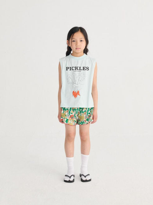 Płócienne szorty z motywem kolorowych roślin. Mają elastyczną talię. Nogawki wykończone są delikatnymi falbankami.